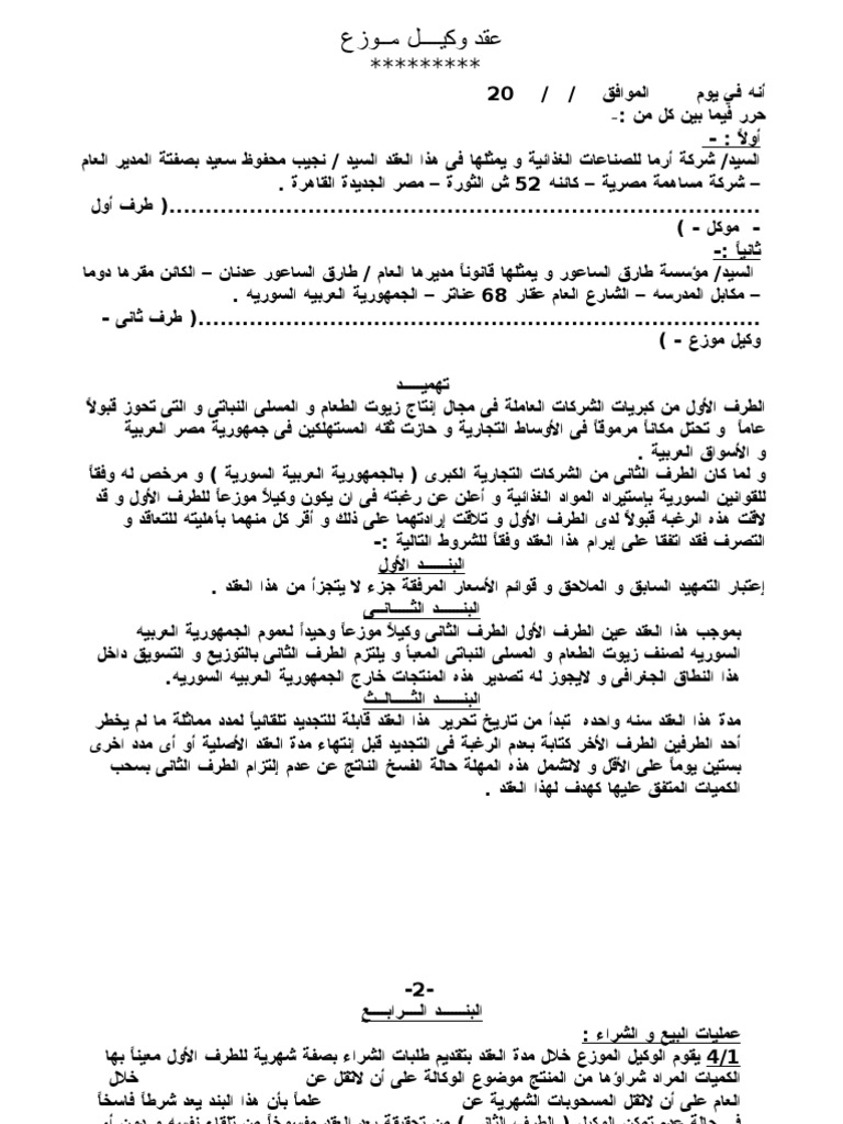 عقد وكيل موزع